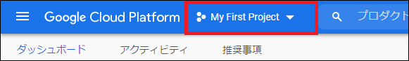 - プロジェクト作成後、再度プロジェクト選択プルダウンをクリックし、作成したプロジェクトを選択してください。