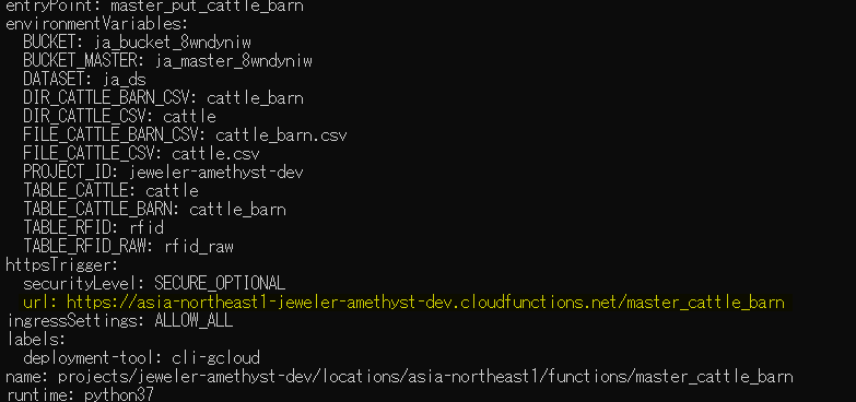 gcloud functions deploy master_cattle_barn --entry-point master_put_cattle_barn --trigger-http --region=asia-northeast1 --env-vars-file env.yaml --runtime python37 --allow-unauthenticated --memory=1024 --timeout=180